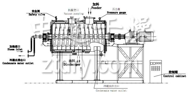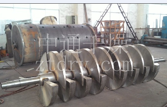 2、 筒体内中心部位设置中空传动轴,轴内通加热介质(导热油或热水)。