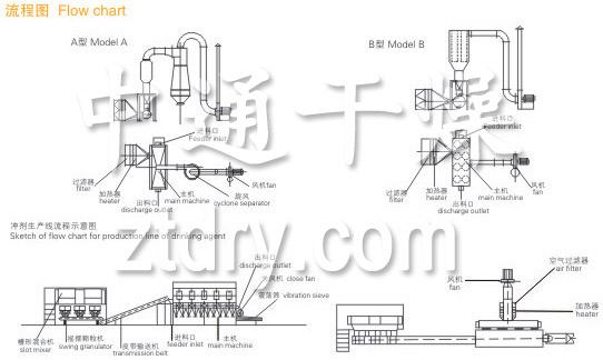 它适用于散粒状物料的干燥,如:医药药品中的原料药、压片颗粒料、中药冲剂、化工原料中的塑料树脂、柠檬酸和其他粉状、颗粒状物料的干燥除湿,还用于食品饮料冲剂,粮食加工、玉米胚芽、饲料等的干燥。物料的粒径最大可达6mm,最佳为0.5~3mm。