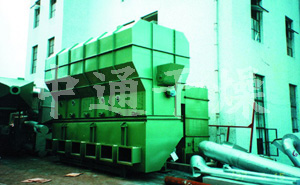 沸腾干燥,又称流化床,它是由空气过滤器、加热器、沸腾床主机、旋风分离器、布袋除尘器、高压离心风机、操作台组成,由于干燥物料的性质不同,配套除尘设备时,可按需要考虑,可同时选择旋风分离器、布袋除尘器,也可选择其中一种,一般来说比重较大的如冲剂及颗粒物料干燥只需选择旋风分离器,比重较轻的小颗粒状和粉状物料需配套布袋除尘器,并备有气力送料装置及皮带输送机供选择。