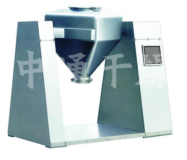 将物料装入方锥形密闭混合桶内,料斗对称的轴线与回转轴轴线成一夹角,不同成份物料在密闭的料门中进行三维空间运动,产生强烈翻转和扩散作用,达到较好的混合效果。整机设计新颖、结构紧凑、外形美观、混合均匀度达99%,体积装料系数达0.8。