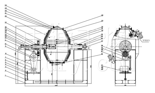 5、根据物料特性可以在普通双锥上设计装有一到二个破碎装置。