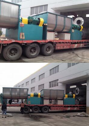 日前,由山东某客户单位订购的四台LWDH-5.0卧式螺带混合机制作,正式发货。我公司生产的卧式螺带混合机由U形壳体、螺带搅拌放入叶片和传动部件组成;螺带状叶片为双层内外结构,外层螺旋 将物料从两侧向中央汇集,内层螺旋将物料从中央向两侧输送,形成对流混合。卧式螺带式混合机对于粘性或有凝聚性的粉粒体的混合以及粉体中添加液体及糊状物料的混合有良好的效果,筒盖可做成全开式门,以便于对设备进行清洗更换产品。下图装车现场照片: