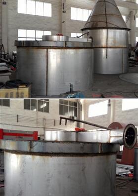 目前正值七月流火、高温酷暑季节,为严格履行合同、保证及时交货,我公司生产车间一线员工正加班加点工作。下图为河北客户定制的高速离心喷雾干燥机制作现场照片: