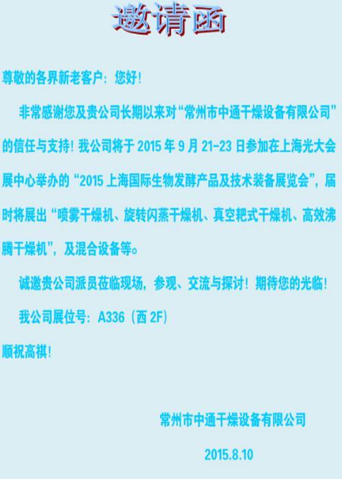 2015上海发酵产品与技术装备展邀请函