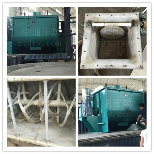 我公司生产的卧式螺带混合机由U形壳体、螺带搅拌叶片和传动部件组成;螺带状叶片为双层内外结构,外层螺旋 将物料从两侧向中央汇集,内层螺旋将物料从中央向两侧输送,形成对流混合。