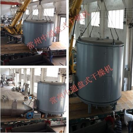 由北京**新材料科技有限公司订购的大型盘式干燥机装车发货。该盘式干燥机大盘直径为3000mm,小盘直径2700mm,设备布料盘和冷却出料盘,总层数达14层。系统配置螺旋加料器和脉冲式布袋除尘器及热风补充装置。下图为装车现场照片: