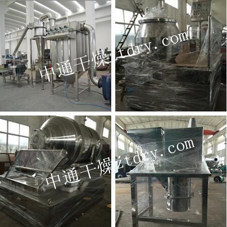 由河南**药业有限公司订购的微粉碎机、二维混合机、高效湿法混合制粒机和整粒机已制作完成,今明两日即可装车发货。下图为设备实景照片: