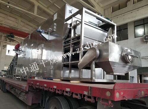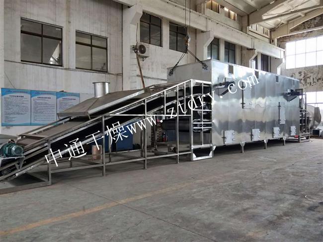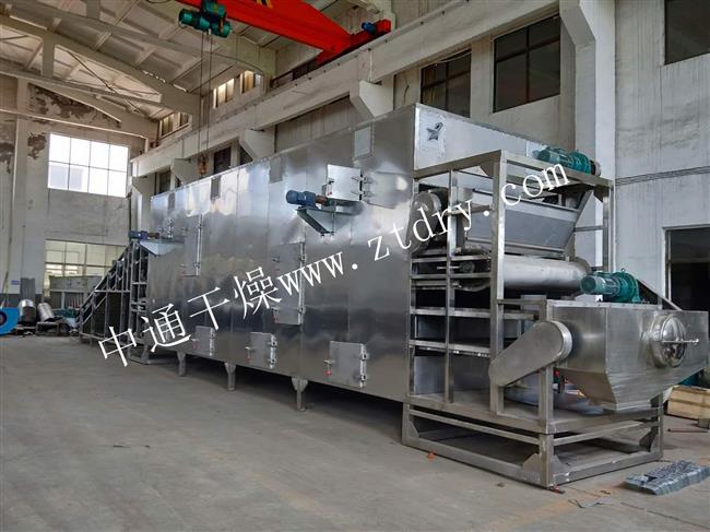 用于水份较高的物料时,也可三台设备串联使用,形成初干段、中间段及终干燥。在初干段中,由于物料含水量高,透气性差,故采用小的铺料厚度,较快的运行速度及较高的干燥温度。对物料温度不允许超过60℃的料,初干段中,干燥气体温度可高达120℃以上。终干段内物料停留时间是初干段的3-6倍,铺料厚度是初干段的2-4倍。对于物料温度不超过60℃的要求,可采用80℃左右的干燥气体。采用多段组合能更好地发挥带式干燥机的性能。且干燥更均匀。