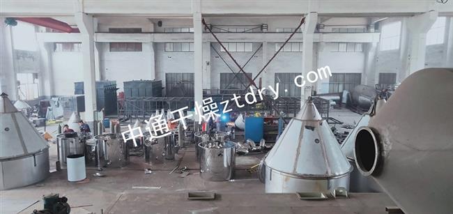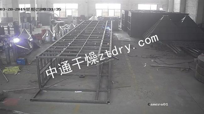 2019年的春季对于中通干燥是繁忙的一季,据统计目前我公司生产车间在制的设备有MC-480脉冲布袋除尘器二台、石墨烯专用喷雾干燥机六台、热风循环烘箱五台、内部喷涂PFA三合一干燥机一台、真空式脉冲布袋器一台、DW2×18带式干燥机二台、沸腾床干燥机一台、20立方螺带混合机三台、ZLG8.0×1.2振动流化床一台。后续仍有多台干燥设备合同即将签约或紧密磋商中。下图为一线车间繁忙象: