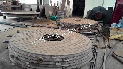 由山东莱州**工贸有限公司订购的PLG3000/14盘式干燥机正式于上周开始制作。该设备是用于将七水硫酸镁制成无水硫酸镁的关键烘干设备,采用导热油加热,配置脉冲布袋除尘器(三防布袋),热风补充装置及专用排湿引风机。下图为现场制作图片: